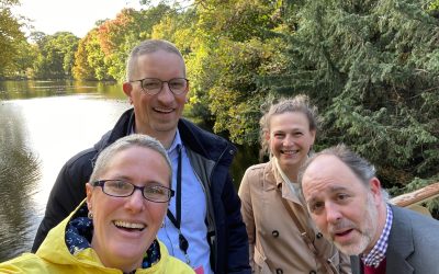 Laura J. Wilkinson (OAPEN Foundation), Ronald Snijder (OAPEN Foundation), Lucy Montgomery (Curtin University) and Cameron Neylon (Curtin University) meeting in person for a series of project workshops in The Hague, October 2022.